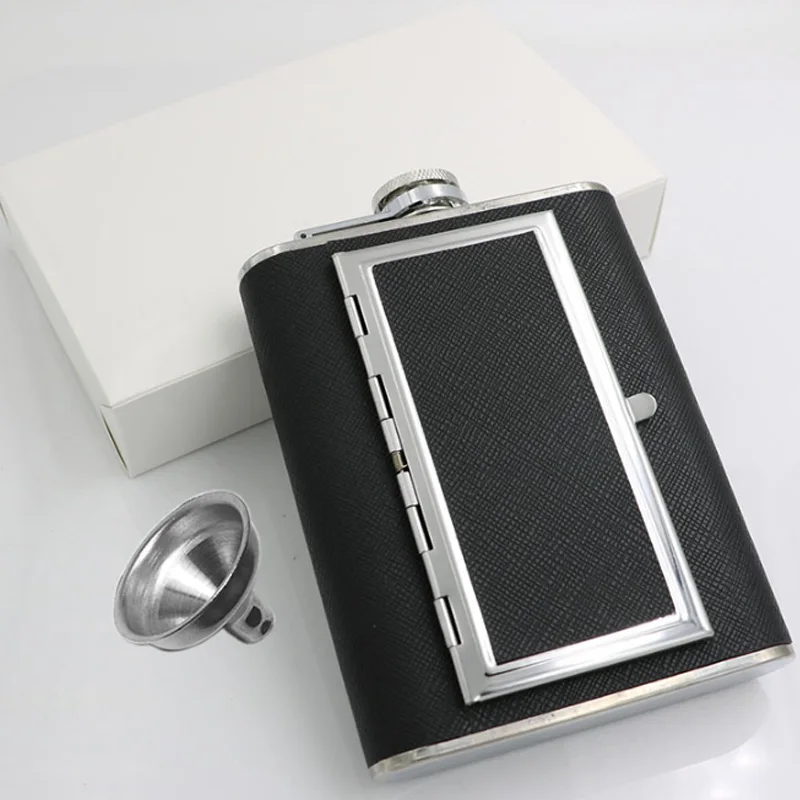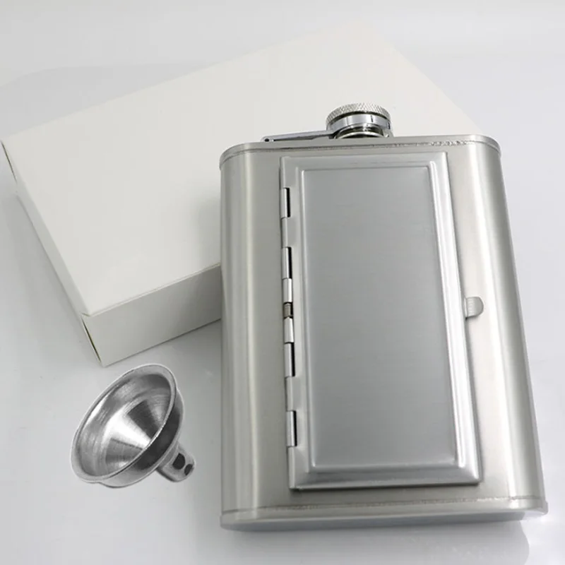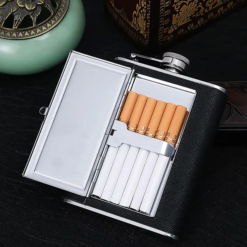 Pocket Whiskey Vodka Flasks for Alcohol with Cigarette Case Stainless Steel Portable Creative Alcohol Bottle Groomsmen Gift 6 Oz